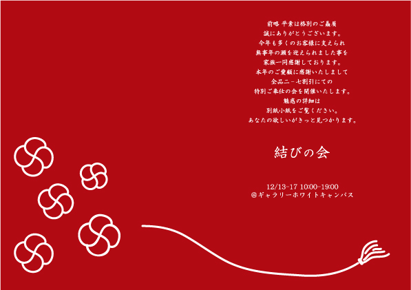 と き 12月13日(木)-17日(月) am10:00-pm19:00