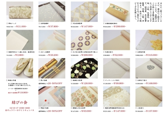平素は格別のお引き立てを賜り、誠にありがとうございます。本年も多くのお客様に支えられ、無事年の瀬を迎えられました事、家族一同感謝いたしております。本年のご愛顧に感謝しまして、全品2-7割引きの特別ご奉仕の会を開催いたします。きものや帯はもちろん、帯〆、帯揚げ、お草履などの小物まで、年に一度の特別価格。あなたの欲しいがきっと見つかります。