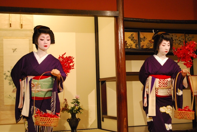 皆様ご存知のように、『一力亭』は祇園を代表するお茶屋で『一見さんお断り』や『忠臣蔵の大石内蔵介が豪遊した事』でも有名なお茶屋さんです。一年で最高の季節を迎える秋の京都で一力のお座敷に上がり、舞妓さんの艶やかな舞と芸をお楽しみ頂ければとご案内申し上げます。