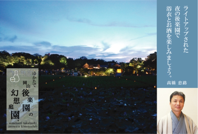 8月のきものでお出かけの会は、岡山後楽園の幻想庭園で、浴衣とお酒を楽しみましょうです。毎年夏にだけ特別解放される、ライトアップされた幻想的な後楽園に浴衣でお出かけしませんか?お食事と、お酒の手配は弊店が行いますので、浴衣を着て後楽園までお越しください。今回も定員になり次第締め切りとさせて頂きます。皆様のご参加お待ちしております。