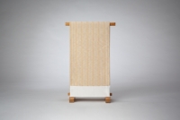 北村武資氏は1935年京都生まれ。京・西陣で得た高度な織の技術と現代的な感覚によって、織の造形に新たな地平を切り開きました。氏が織の世界に入って六十余年。羅と経錦、二つの人間国宝(重要無形文化財保持者)に指定された今もその情熱は衰えず、常に新鮮な驚きをもたらしてくれます。
