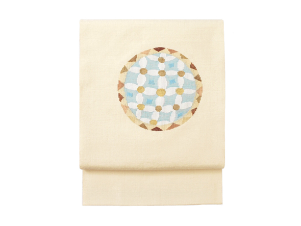 商品紹介「洛風林 八寸名古屋帯(生成り・七宝絵皿文)」1点更新しました。