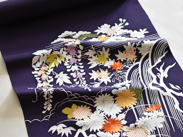 トップページ > 商品紹介 > 京友禅 九寸名古屋帯(深紫色・滝御所解き)