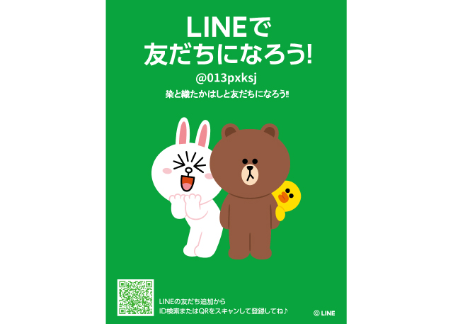 染と織たかはしのLINE公式アカウントが開設いたしました。