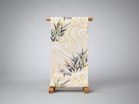 トップページ > お知らせ> 商品紹介「織文意匠鈴木 唐綾錦袋帯(波涛海浜文様・淡生成り)」更新しました