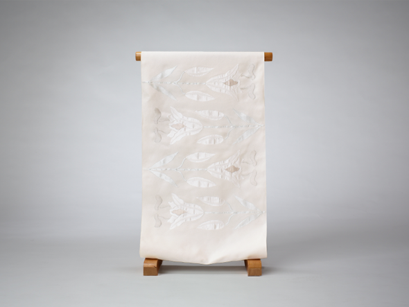 トップページ > お知らせ> 商品紹介「洛風林 九寸名古屋帯(百合文・白色)」更新しました