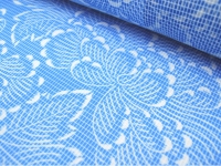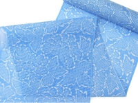 淡い露草色の地色に、コントラストが美しい白上げの蟹牡丹。透け感のある生地は大変軽く、夏らしい清涼感を感じさせてくれます。