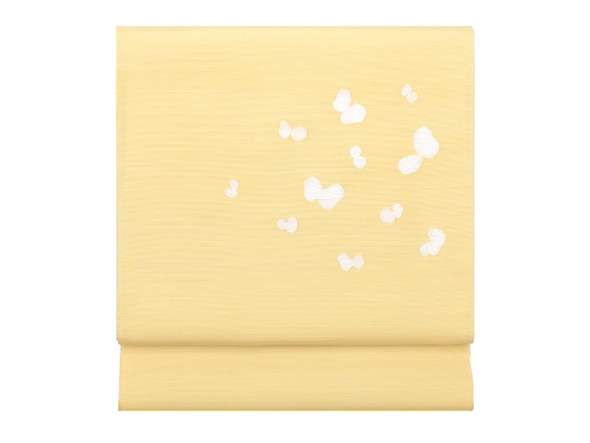 商品紹介「すくい織 九寸名古屋帯(淡黄色・蝶々)」1点更新しました