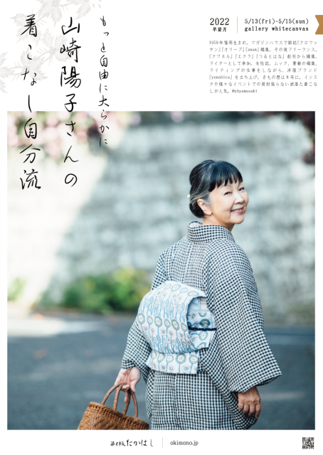 今回は山崎陽子さんを岡山にお招きして、『もっと自由に大らかに 山崎陽子さんの着こなし自分流』と題した会を開催いたします。山崎さんが日常で楽しまれる作り手や産地の作品、そして弊店のセレクトした染織品を合せて展示いたします。