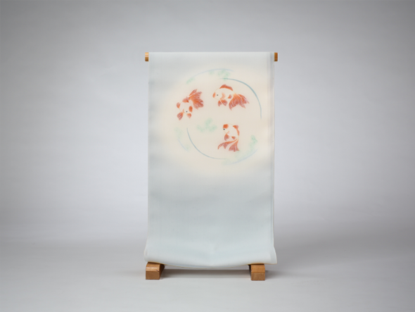 トップページ > お知らせ> 商品紹介「無双九寸名古屋帯(水草に金魚・淡新橋色)」更新しました