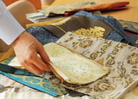 齋藤織物作品展では、目ざしと呼ばれる豊富な見本裂からのお誂えや切嵌帯地のご注文を承っております。