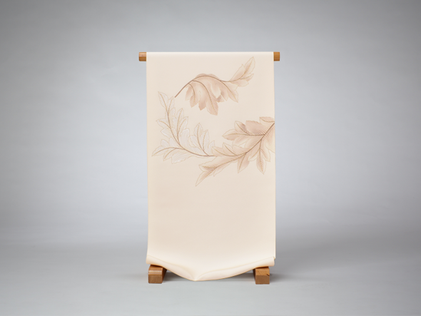 トップページ > お知らせ> 商品紹介「京友禅 塩瀬名古屋帯(薄練色・葉重ね)」更新しました