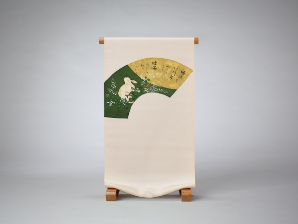 商品紹介「京友禅 塩瀬名古屋帯(月兎画賛扇面・絹鼠色)」更新しました。