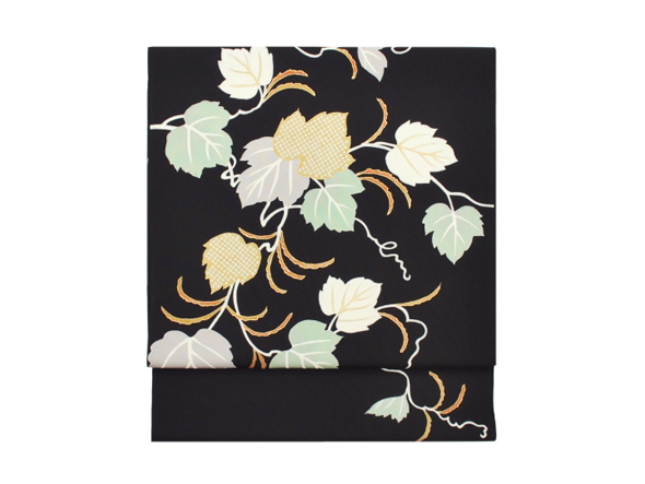 商品紹介「京友禅 塩瀬九寸名古屋帯(蔦文様・黒地)」1点更新しました