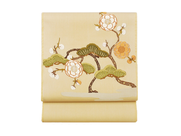 トップページ > お知らせ> 商品紹介「齋藤織物 唐織九寸名古屋帯(洲浜に松梅紋・淡芥子色)」1点更新しました