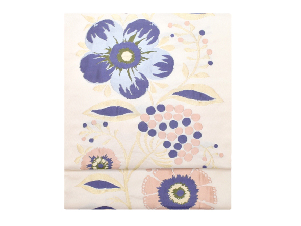 商品紹介「洛風林 九寸名古屋帯(キエフ花唐草・白色)」1点更新しました