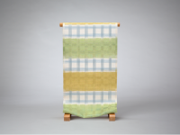 商品紹介「柳晋哉 綾市松染分け九寸名古屋帯(緑と黄)」更新しました