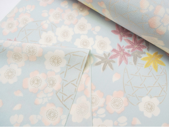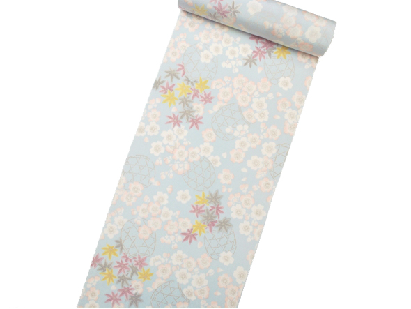 縮緬小紋着尺(淡水色・花籠春秋文)
