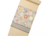 国画会岡本紘子 型絵染め名古屋帯(花二月)
