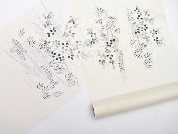下絵・糊糸目・色挿・糊伏せ・地染・蒸し水元・刺繍など、細かく分ければ20以上の工程を経て、ようやく一反のきものが完成する糸目友禅。それぞれの工程は分業、異なる職人の手仕事で行われています。