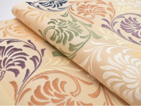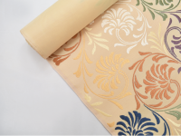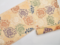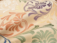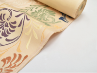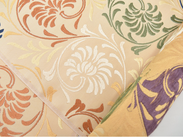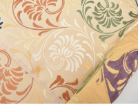 綾・浮織物・二陪織物・錦・羅・紗・穀などの多岐にわたる技法と、長い年月をかけ磨かれた美しい文様・色彩は、代々俵屋・喜多川家に受け継がれ大切に守られてきました。先代の喜多川平朗氏の頃から、一般の方に向けて帯地として形を変え製作がはじめられましたが、数年前に惜しまれつつも帯地としての製作は終えられたとお聞きしています。