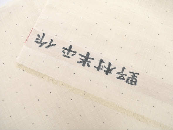 撚糸と麻糸を用いるため、一般的な本場結城紬の証紙は使用できませんが、まぎれもなく結城紬と同等の仕事が重ねられています。そして故人である半平氏への敬愛を込め、現在も反端の証紙には“本場夏結城 野村半平”の文字が用いられています。