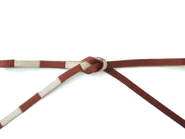 トップページ > 商品紹介 > 変四段綾竹組帯締め(紅海老茶×亜麻色)