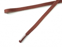 紅海老茶色(錆びた朱色)に、片方は無地、もう片方を亜麻色との市松に組み上げた変四段綾竹組の帯締めです。やや幅広の綾竹組を撚り房で仕上げてあります。